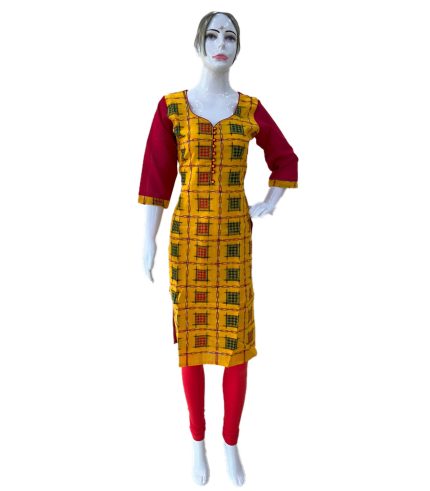 Upgrade your ethnic collection with this elegant Black & Mustard Printed Women’s Kurti, designed...