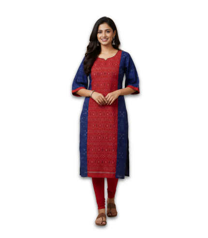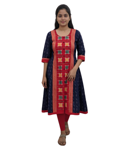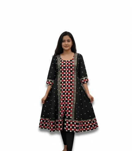 Elegant White & Red Anarkali Kurti with Traditional Patchwork – Perfect for Festive & Casual...