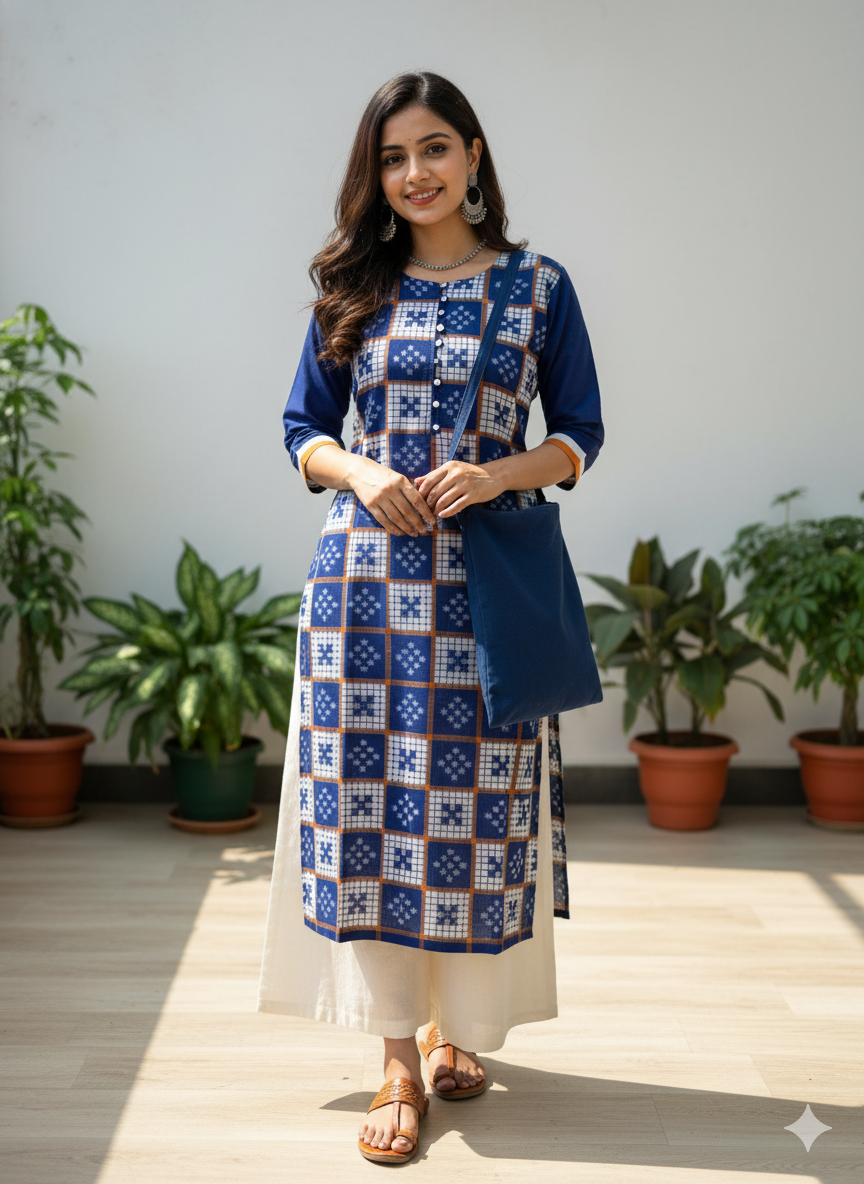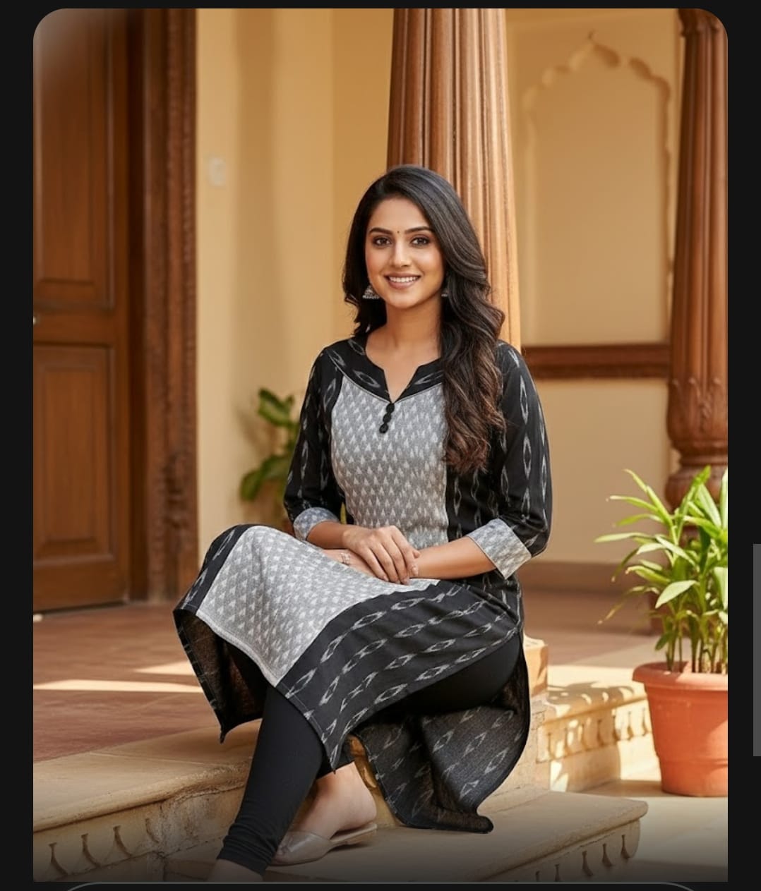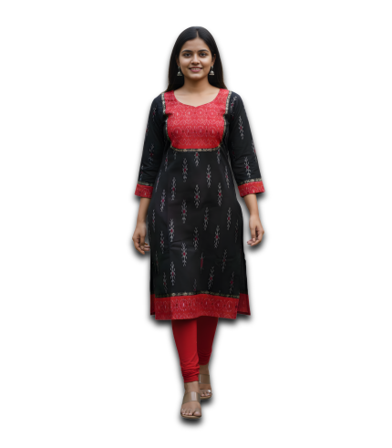 Black & Mustard Traditional Printed Kurti for Women – Elegant Ethnic Wear for Daily & Office Use