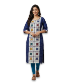Elegant women’s blue ethnic kurti from Maa Mangala Handloom, featuring a multicolor checkered handloom-inspired front panel and traditional patterns. Comfortable and stylish, perfect for daily wear, office wear, and festive occasions.